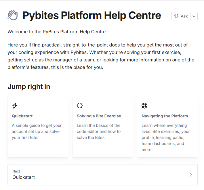 Use the link below to check out our first support articles on setting up an account, solving your first Bite and navigating the platform.